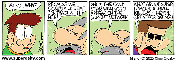 Cartoonist/Webmaster: Chris Crosby (superosity@keenspot.com) Special Thanks to Teri Crosby, Bobby Crosby and Barton Piper SUPEROSITY and all related characters are TM and (C) 1999 Chris Crosby. All rights reserved. PLEASE READ OUR PRIVACY POLICY.