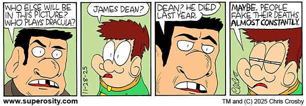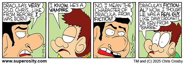 Cartoonist/Webmaster: Chris Crosby (superosity@keenspot.com) Special Thanks to Teri Crosby, Bobby Crosby and Barton Piper SUPEROSITY and all related characters are TM and (C) 1999 Chris Crosby. All rights reserved. PLEASE READ OUR PRIVACY POLICY.
