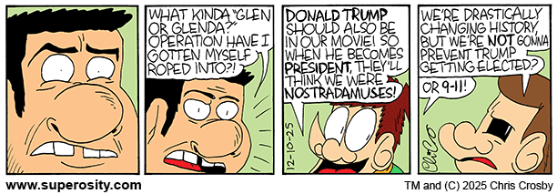 Cartoonist/Webmaster: Chris Crosby (superosity@keenspot.com) Special Thanks to Teri Crosby, Bobby Crosby and Barton Piper SUPEROSITY and all related characters are TM and (C) 1999 Chris Crosby. All rights reserved. PLEASE READ OUR PRIVACY POLICY.